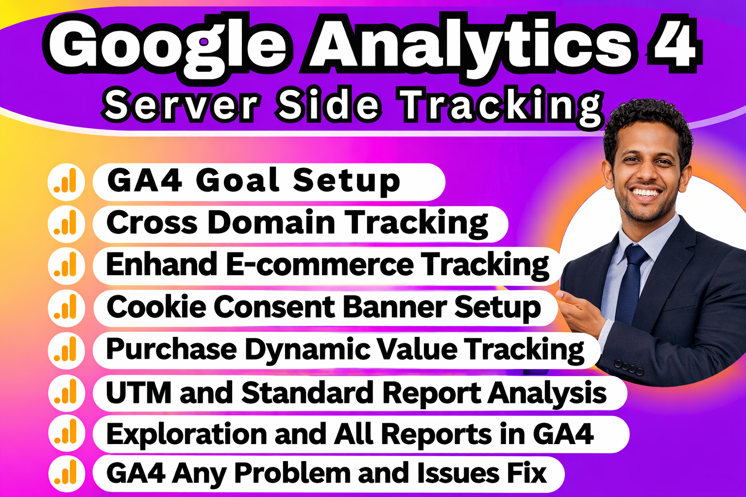 An expert in Google Tag Manager setup, Google Analytics 4, Android app tracking (Facebook), and eCommerce Pixel & Conversion API tracking across platforms such as Facebook, LinkedIn, Pinterest, TikTok, Twitter, Bing, and Microsoft.